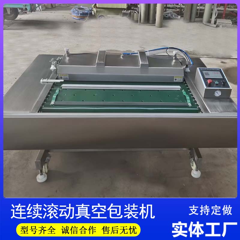 在食品加工行业,连续滚动式真空包装机逐渐取代传统包装设备,成为众多工厂的,这背后离不开其贴合工业化生产的核心优势,并非偶然选择。首先,连续作业能力适配工厂批量生产需求,传统包装设备需要频繁停机、开合真空室,而连续滚动式真空包装机通过输送带持续传送包装袋,自动完成抽真空、热封、出料全流程,无需间断,大幅提升整体加工效率,尤其适合食品加工旺季的高强度生产。其次,节省人工成本,该机全程自动化运行,无需技术人员值守,仅需1-2人负责上料、下料,相比传统设备可减少3-4名操作人员,长期使用能为工厂降低不少人力开支。再者,适配性强,可兼容牛肉、卤肉、粽子、馒头等多种食品,无论是块状、片状还是带汤汁的产品,都能适配,无需频繁调整设备参数,灵活满足工厂多品类生产需求。后,保鲜效果稳定,通过控制真空度,能有效抽除包装袋内空气,抑制微生物繁殖,延长食品保质期,减少产品损耗,提升工厂产品合格率。对于追求、节能、便捷的食品工厂而言,连续滚动式真空包装机的这些优势,契合工业化生产的核心需求,成为工厂提升竞争力的好帮手。